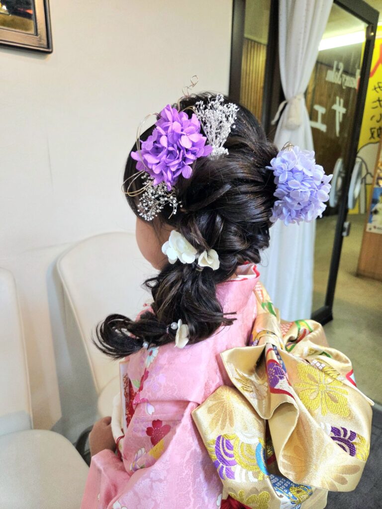 今日の七五三 2025年11月8日 最終更新日時 : 2025年11月8日 美容室サエ 日本髪ではなく、ラプンツェルみたいなヘアセットでと御希望でした。 パープルとピンクのお着物がとてもバランス良いです。 ヘアセット…サエ美容室 着付け…藤村呉服店 外は大道芸祭で賑やか。おめでとうございます😃